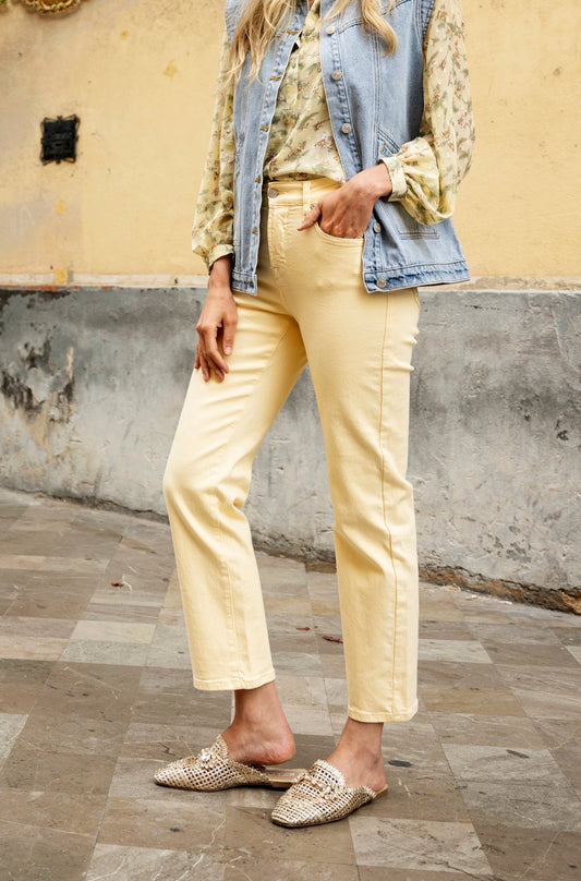 AanbiedingStraight colored jeans - lichtgeel