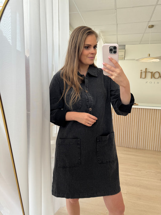 Jeansdress LS - zwart