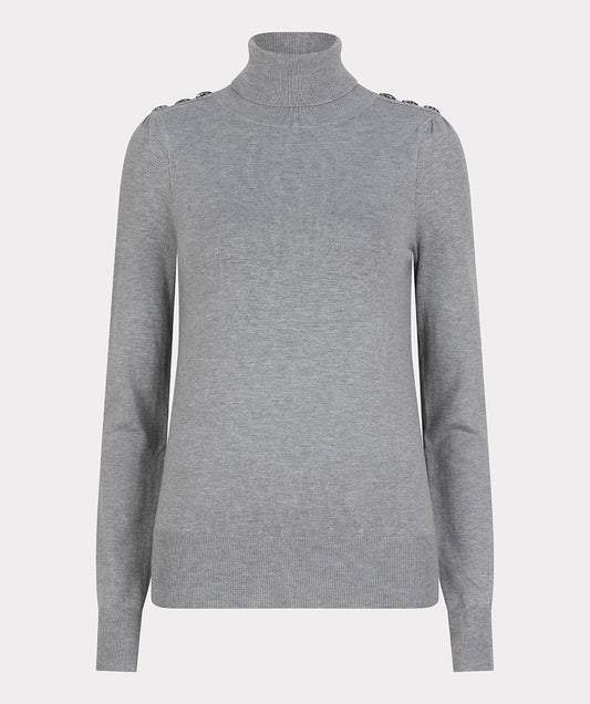 Sweater shldr button col basic - grey melange