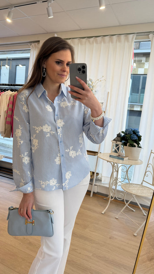 Broderie bloes - blauw/wit