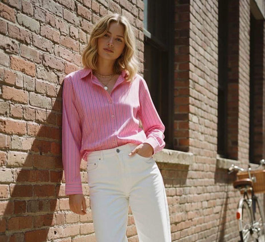 Gestreepte blouse - roze