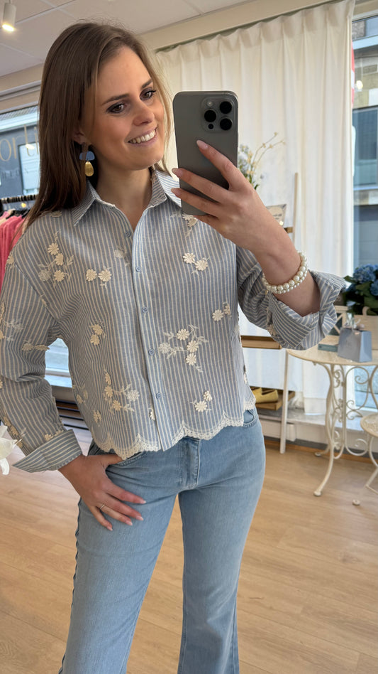Cropped blouse broderie - blauw