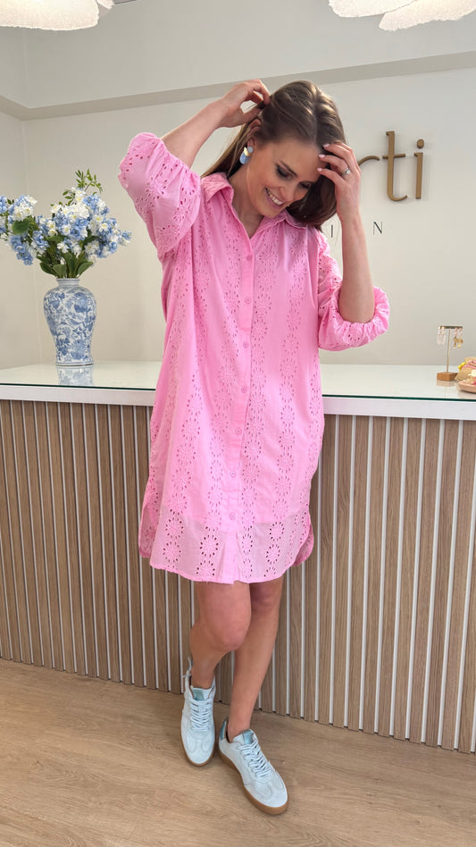 Dona shirt dress broderie - roze