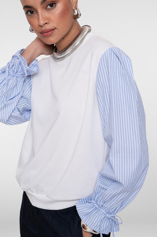 Sweater gestreepte mouwen - ecru/lichtblauw