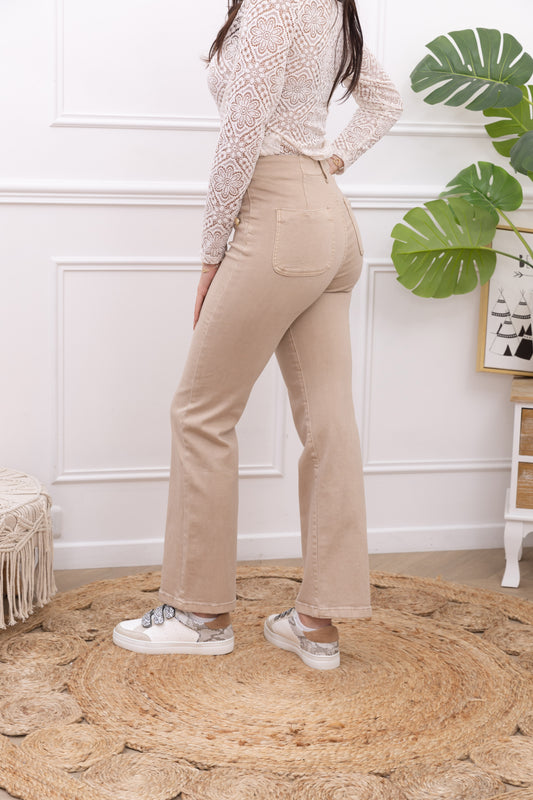 Bootcut broek met gouden knopen - beige