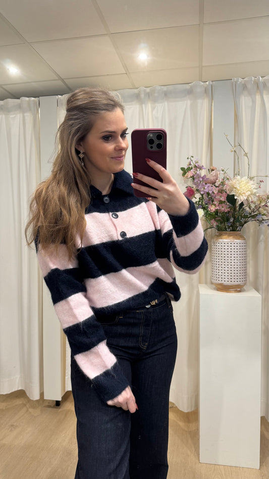 polotrui met streep - marine/roze