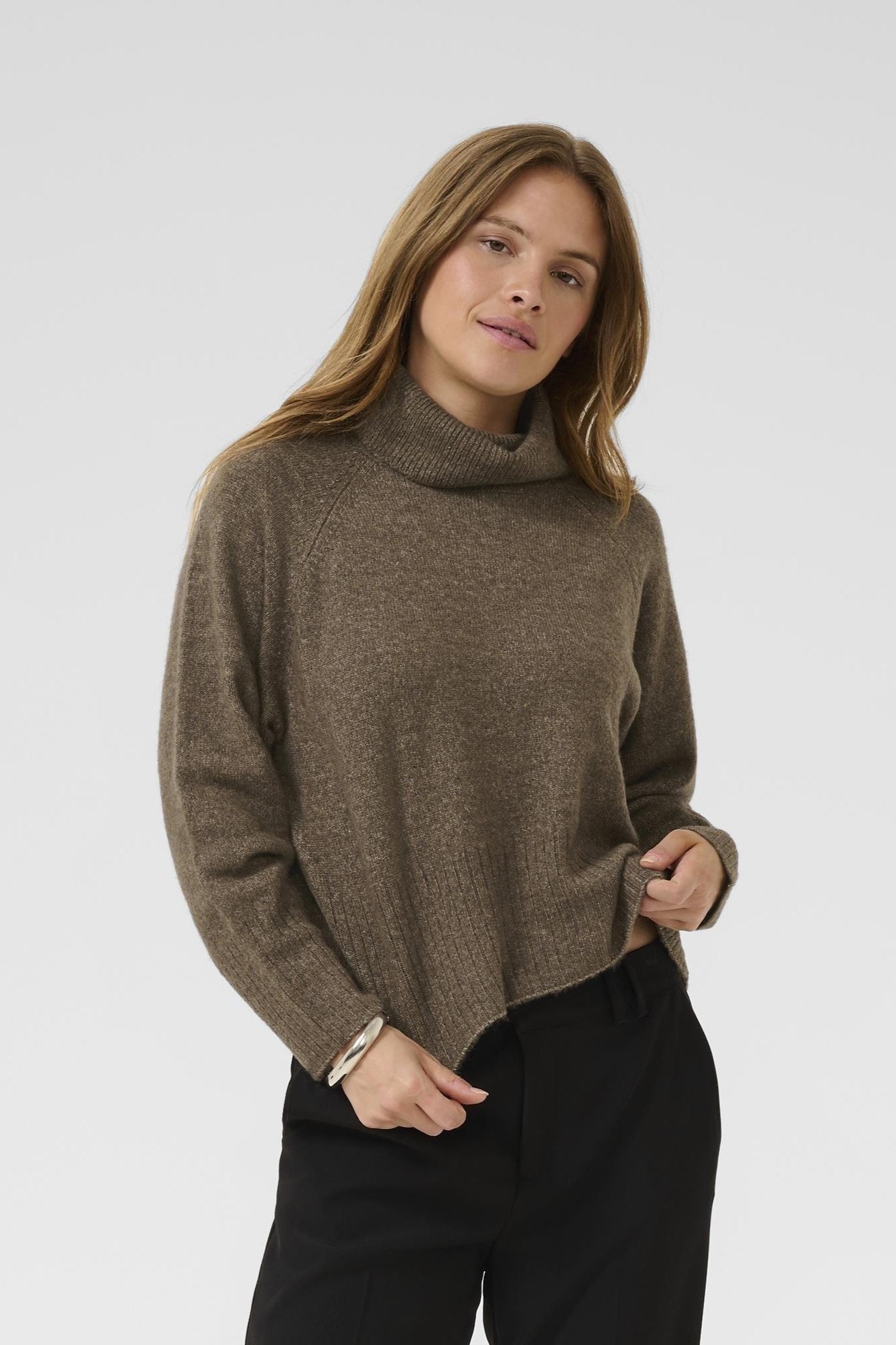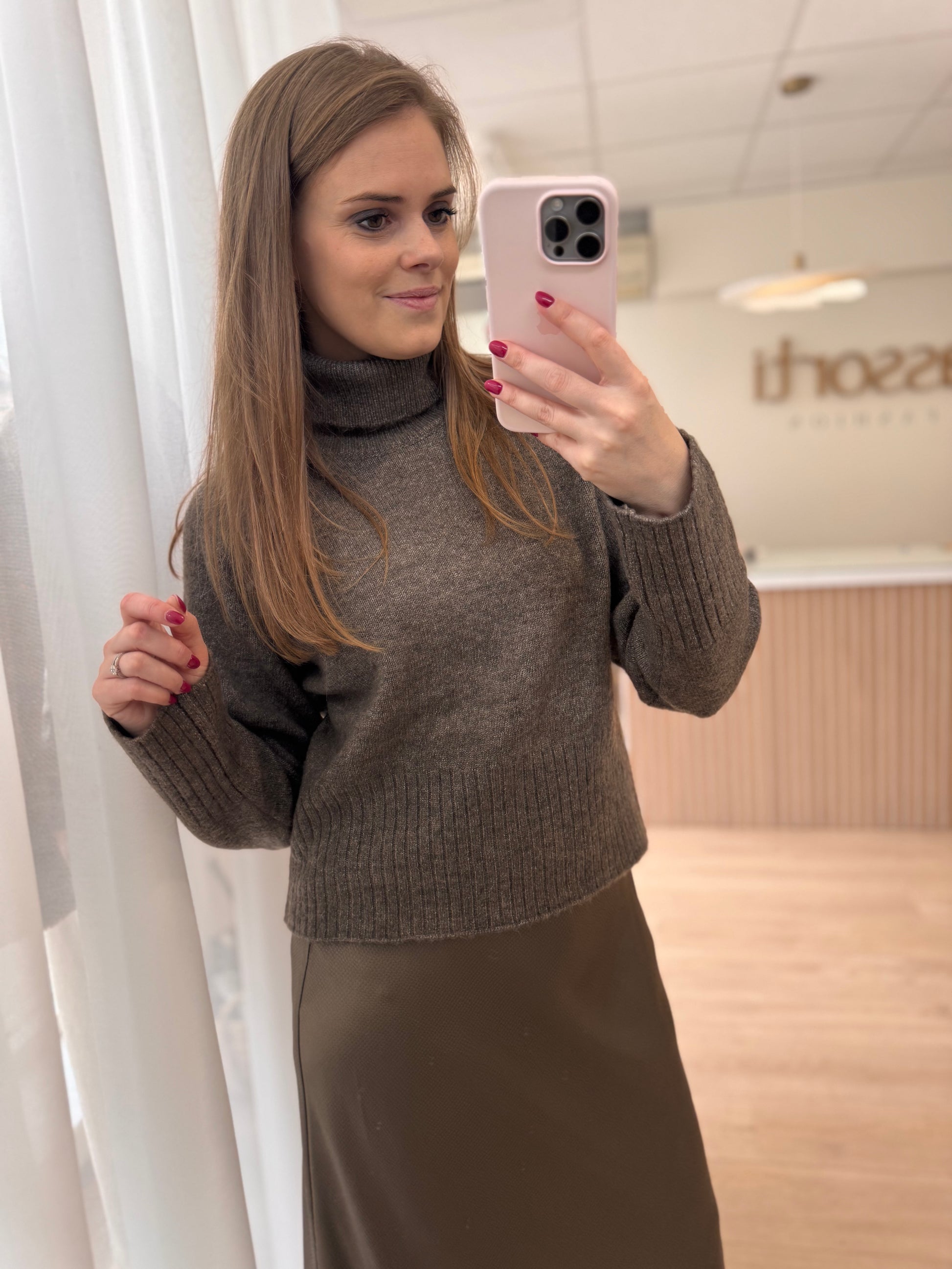 Deze trui heeft een rolkraag en lange mouwen. De trui heeft een rechte fit en valt iets korter uit.