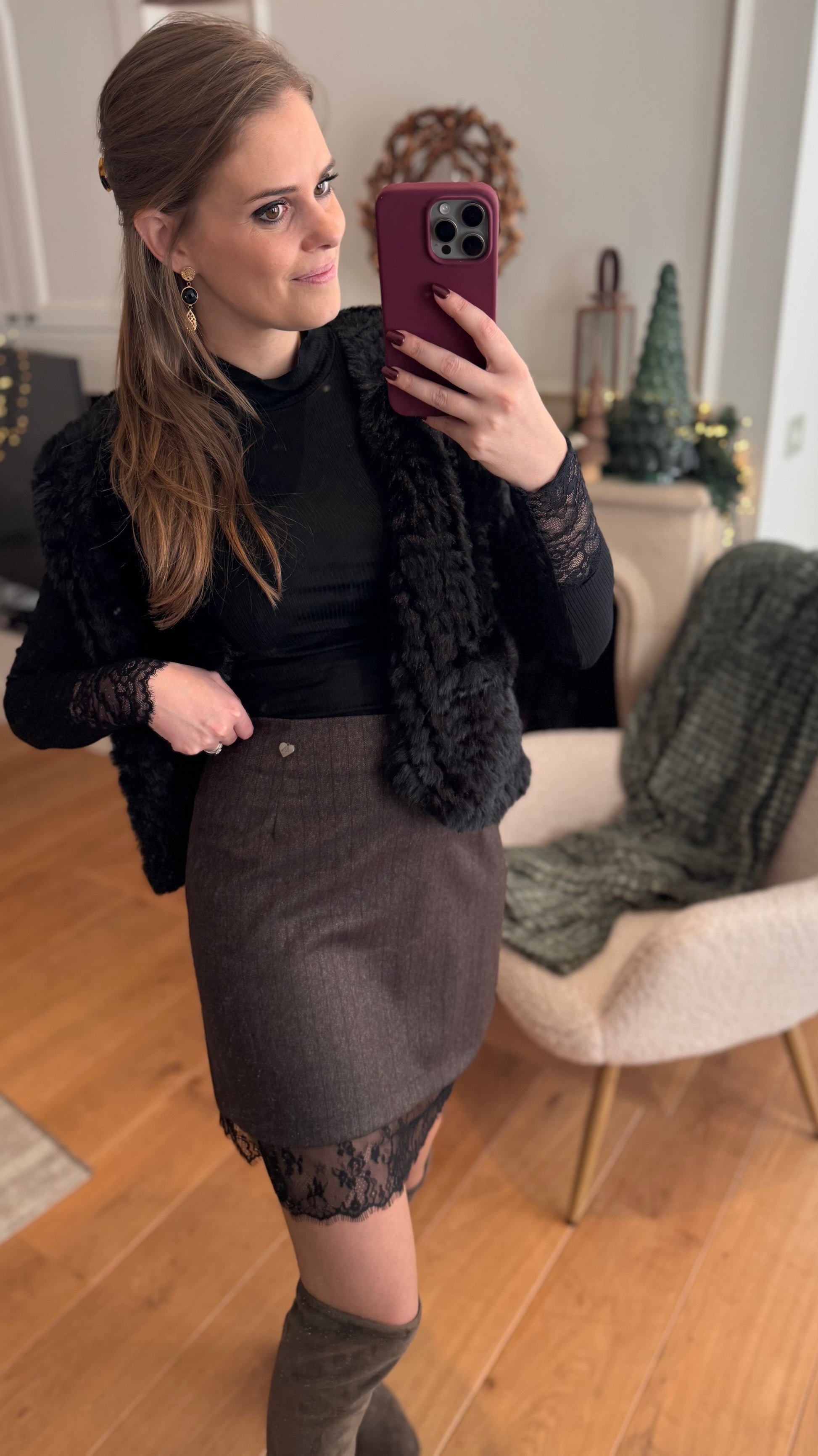 Dit superzachte fake fur jasje heeft een haakje om vooraan te sluiten.