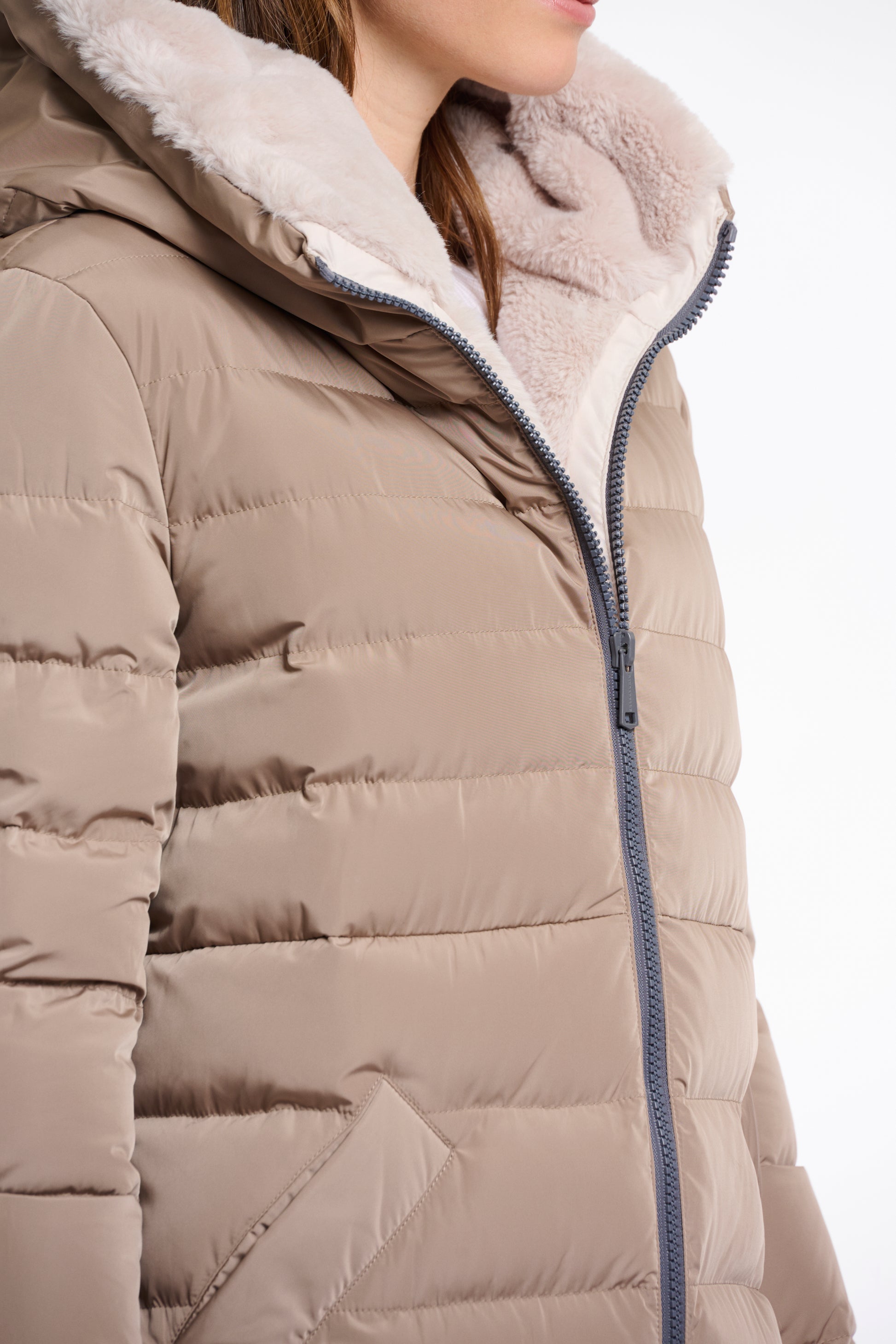 Deze Keila jas is perfect om je warm te houden tijdens de koude maanden, dankzij de voering van imitatiebont. Deze gewatteerde winterjas heeft een ontwerp met ritssluiting, twee voorzakken met drukknoopsluiting en een hoge kraag met capuchon. Deze jas heeft ook splitritsdetails aan beide kanten, waardoor je vrij kunt bewegen en toch warm blijft. Een must-have jas!