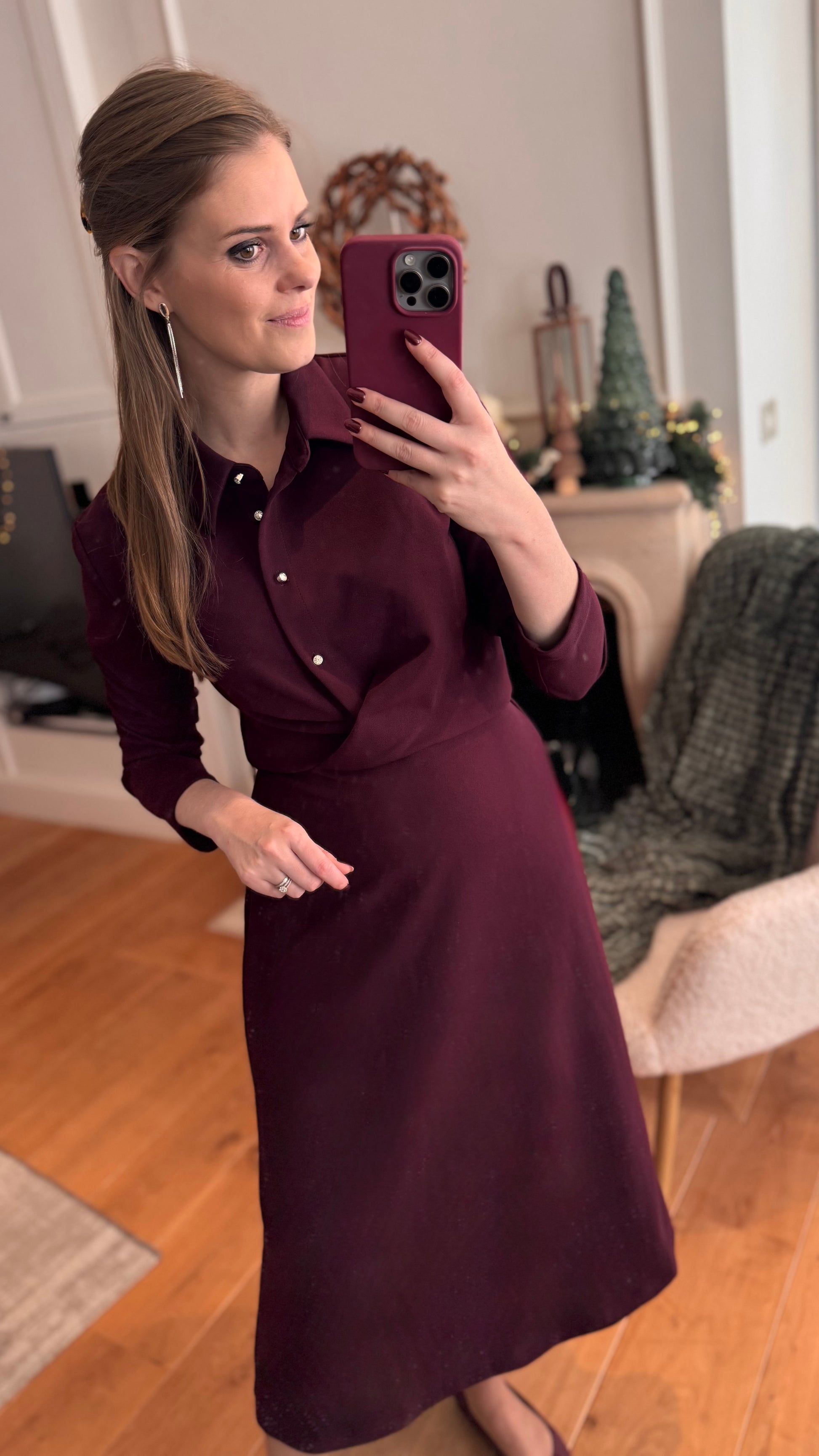Dit kleedje heeft een klassieke col revers en is afgewerkt met prachtige strass steentjes. Het kleedje heeft een speciaal knot effect ter hoogte van de buik.