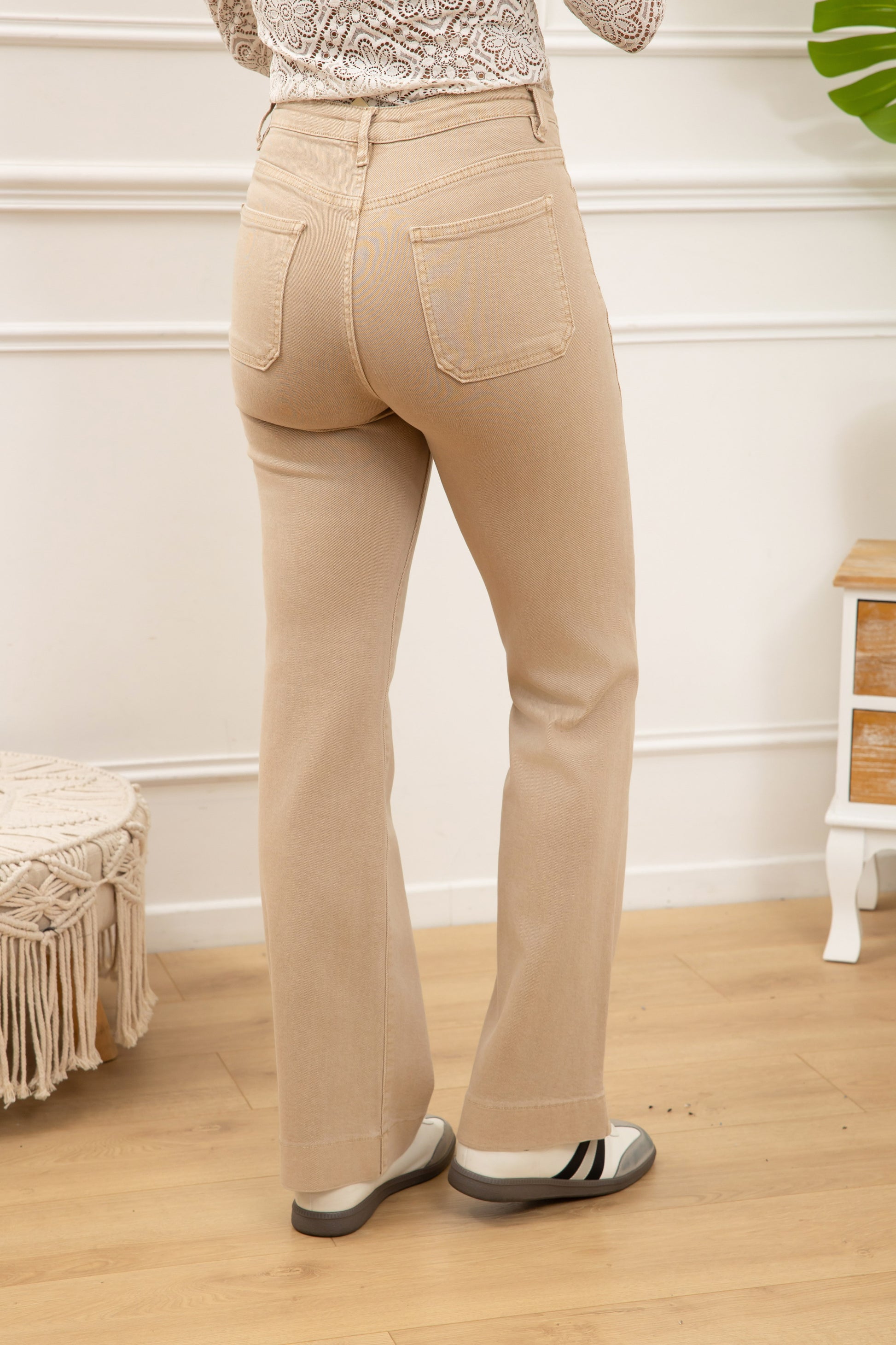 Stretch broek zakjes - lichtbeige