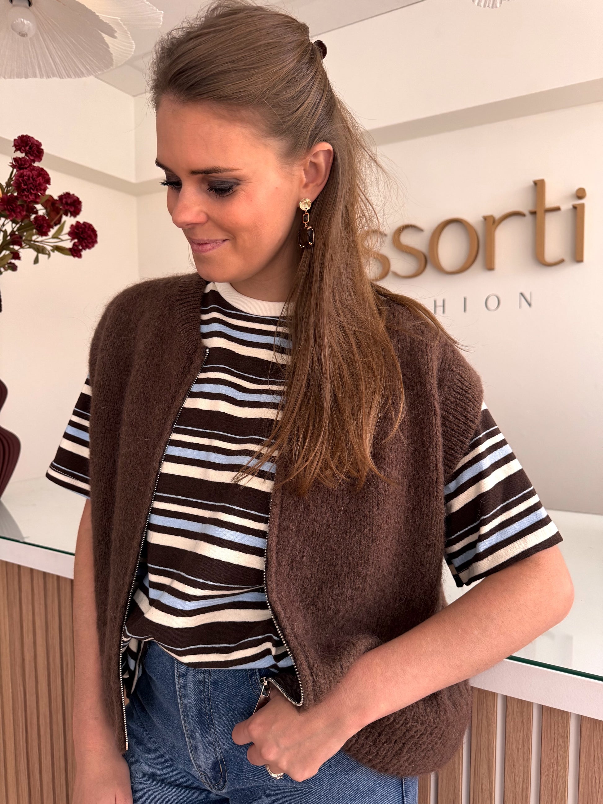 T-shirt streep - bruin/blauw