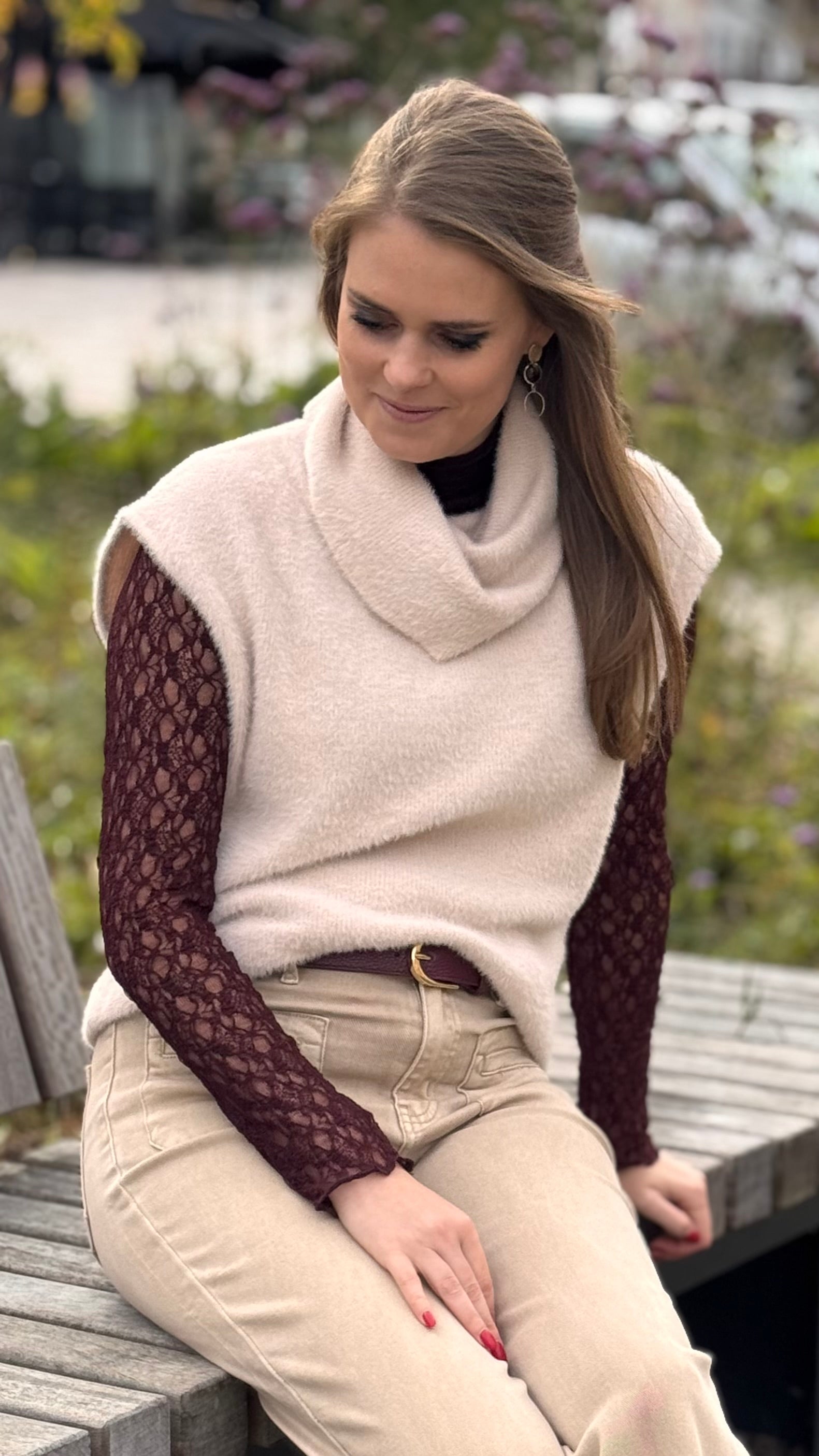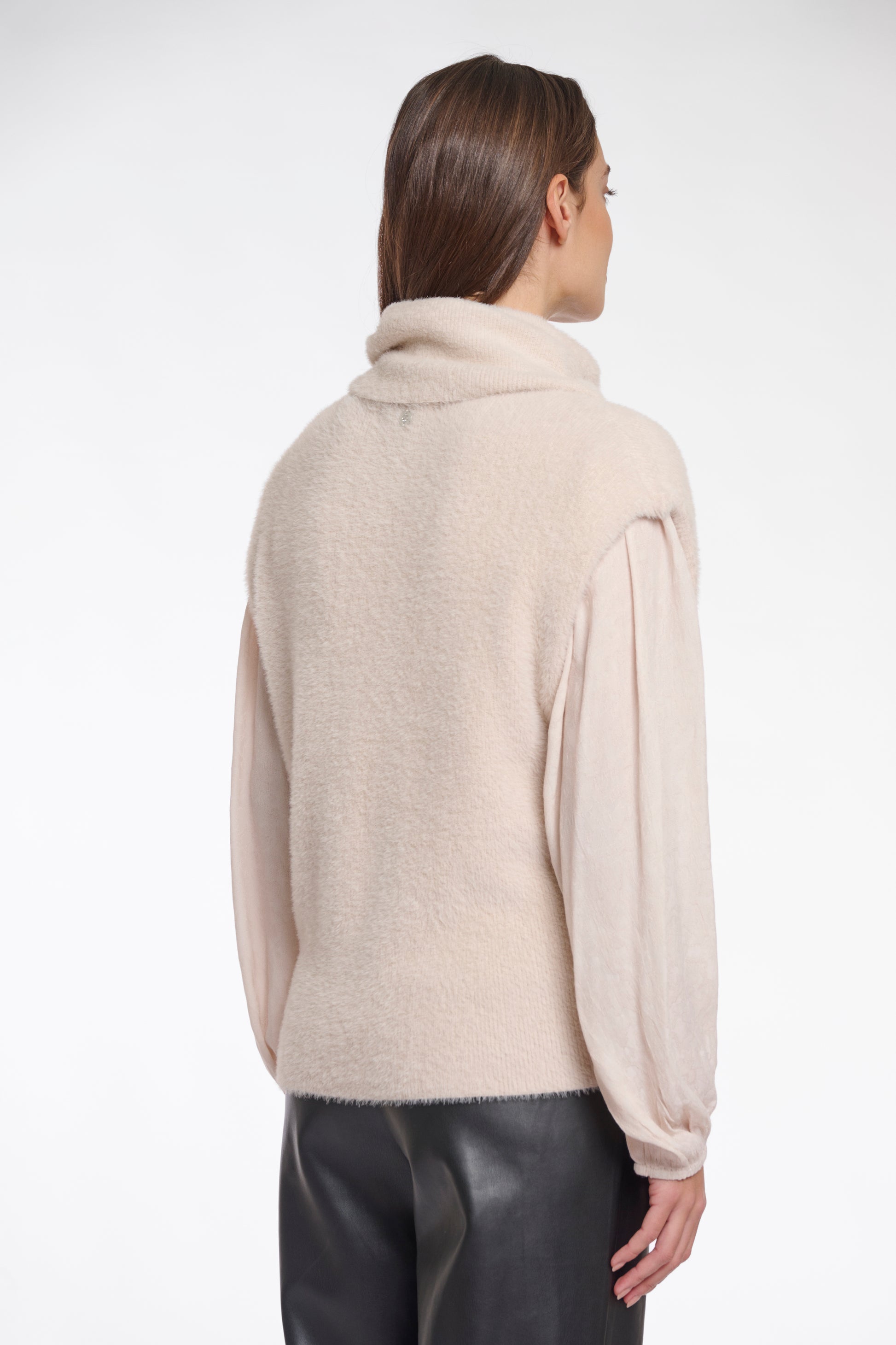 Stijlvol mouwloos truitje met valkraag. Dankzij de superzachte stof een fashionable en cozy must-have.
