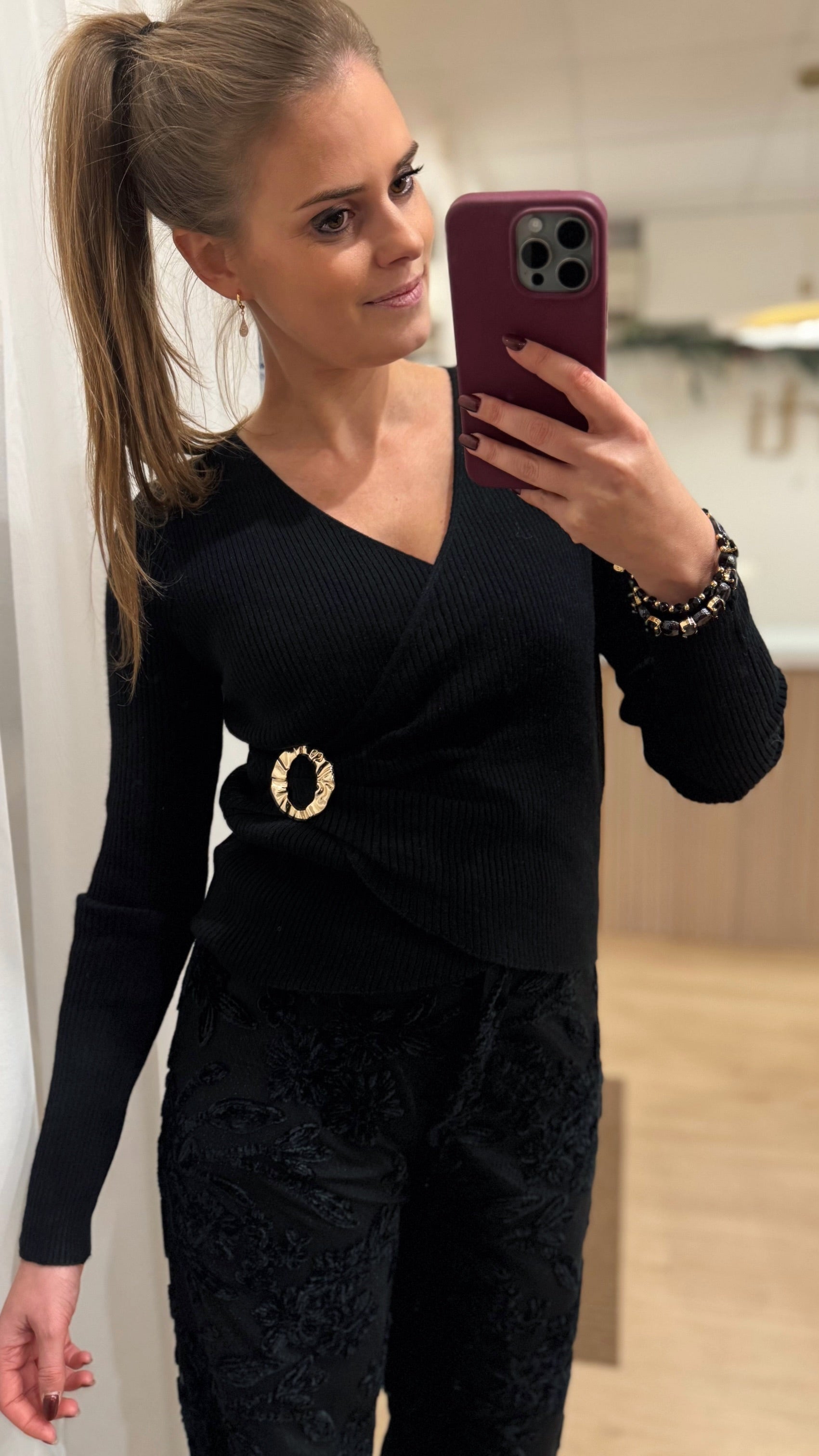 Truitje V hals O ring - zwart