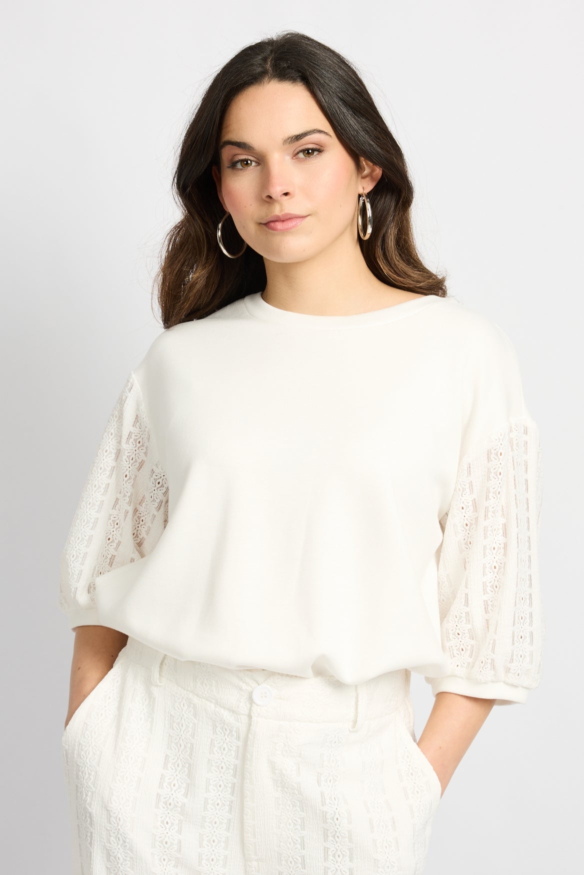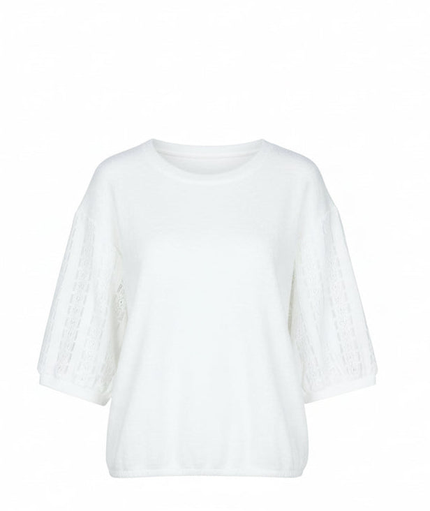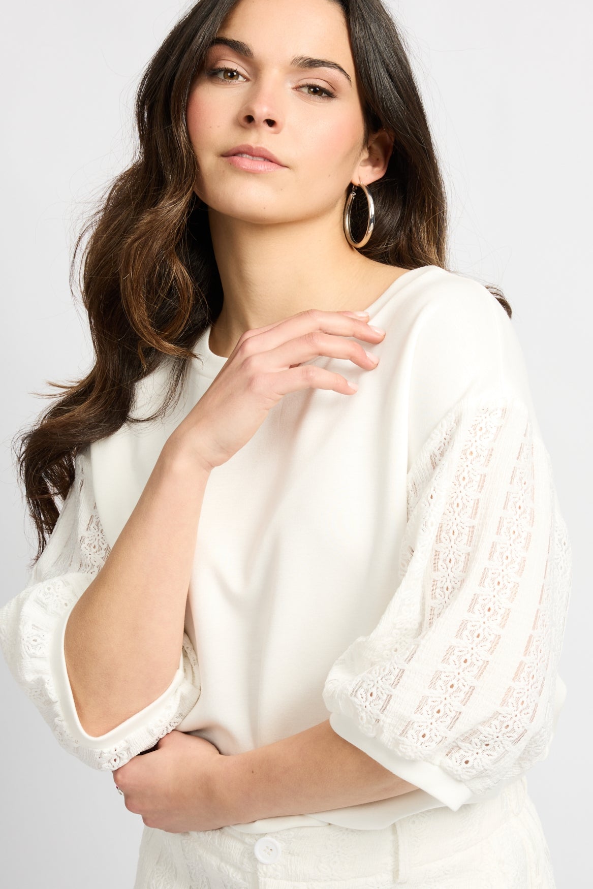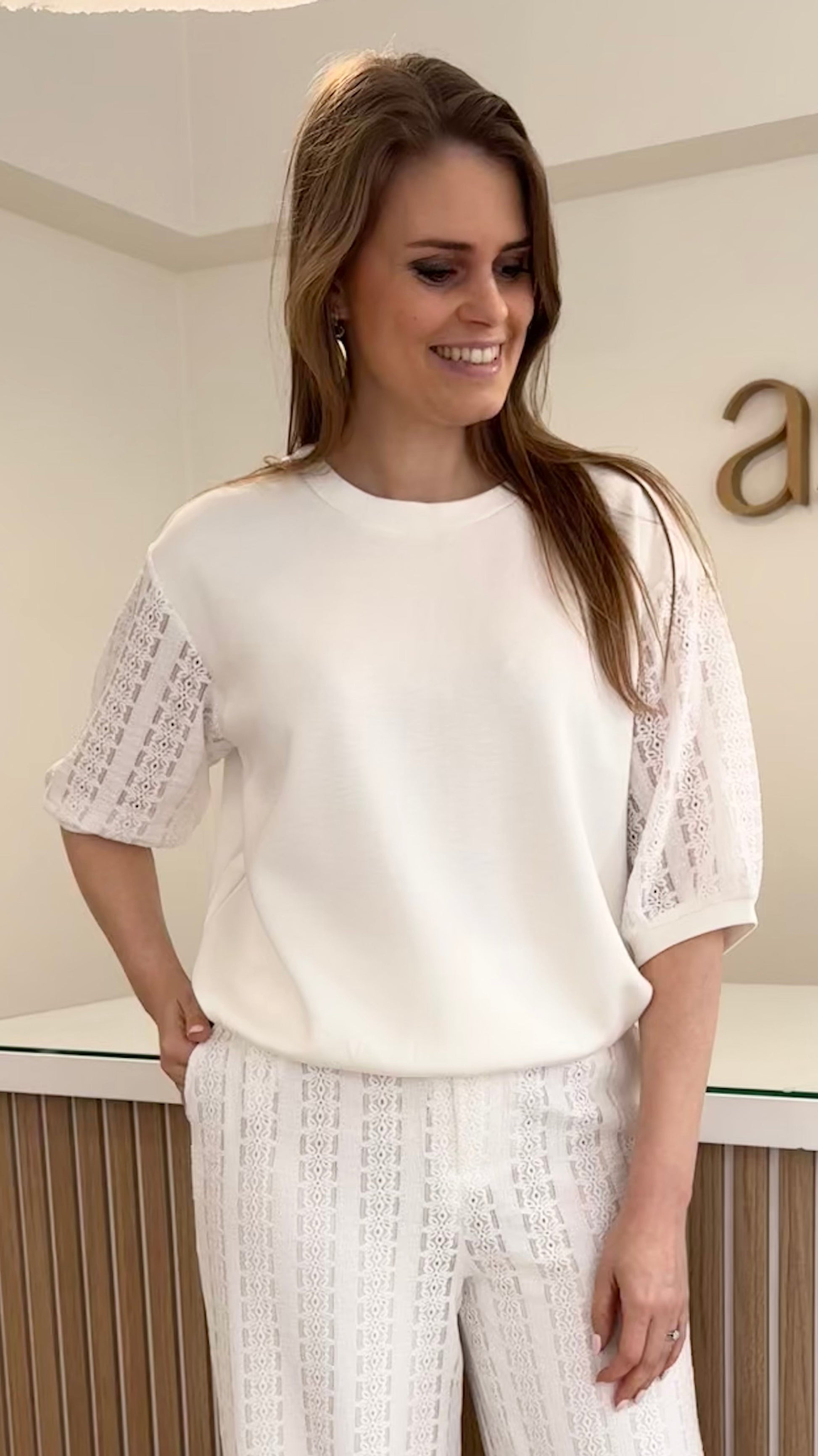 De Winnie sweater is een verfijnde knit met een moderne en vrouwelijke uitstraling. Het model heeft een ronde hals, een losvallende pasvorm en driekwart mouwen met een subtiel opengewerkt detail, wat zorgt voor een elegant en luchtig effect. De zachte stof draagt comfortabel en geeft de trui een rustige, stijlvolle look. Perfect te combineren met een pantalon voor een chique outfit of met denim voor een verzorgde, alledaagse look.